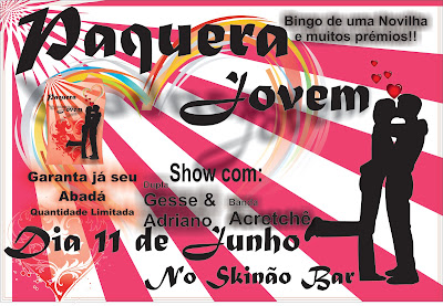 Mais uma edição do paquera jovem,a festa é promovida pelo grupo de jovems da igreja católica de Acrelandia.Com bingos,shows e muita paquera a festa ira se realizar nas vésperas do dia dos namorados,ta ai uma boa opção pra voçê curti uma boa musica e quem sabe ai ganhar um dos premios.