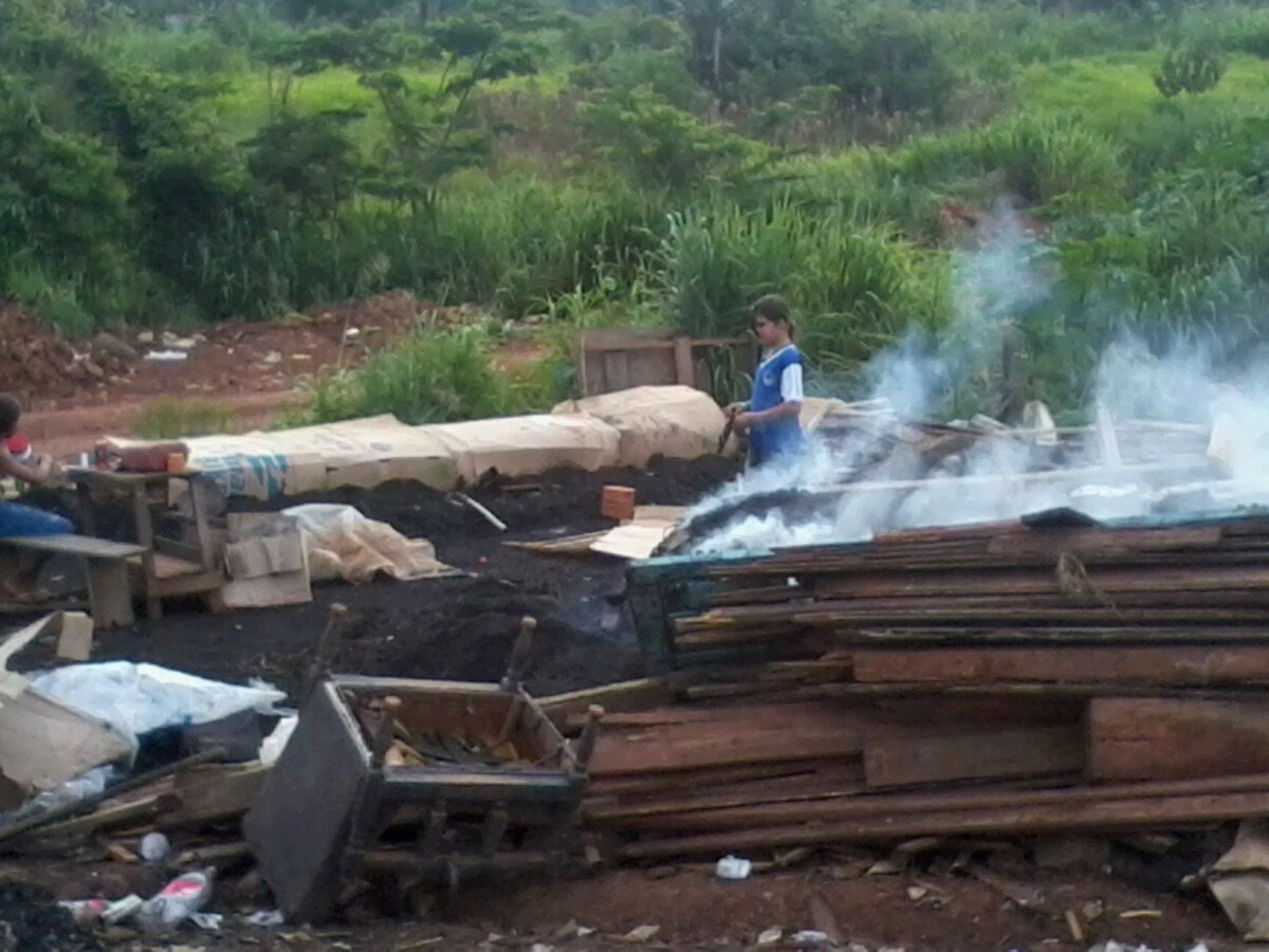 Encontramos esta familia que preferiu não se indentificar no lixão da cidade de Acrelandia(ACRE),estas pessoas trabalham no lixão do municipio em meio aos urubus e animais peçonhentos.Eles fazem carvão de resto de madeira que vai para o lixo,dai então vendem o carvão por um preço muito injusto diz a senhora que trabalha no lixão,ao preço de R$1,50.Ela diz:O POVO NÃO DA VALOR AO NOSSO TRABALHO DURO E SOFRIDO.Com esse desabafo ela faz um relato,O QUE TIRO AQUI DA MAL PRA COMER,O SAQUINHO DE EMBALAR O CARVÃO SOBE,E O PREÇO DO CARVÃO BAIXA,SÓ TO AQUI PORQUE NÃO ARRUMO EMPREGOAQUI EM ACRELANDIA,TRABLHO AQUI A MAS DE 1 ANO.A familia preferiu não se indentificar e nós respeitamos isso.